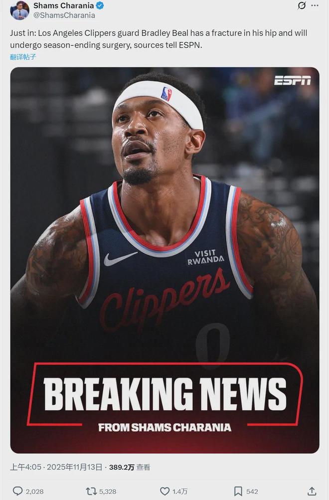 NBA常规赛今天继续进行,快船队主场迎战掘金队。当大赛到来的时候,快船队甚至在赛前就充满了焦虑。原因很简单:他的三巨头还没开始就已经结束了。今天早些时候,NBA 记者 Shams 报道称,快船队后卫布拉德利·比尔臀部骨折。他在上周末对阵太阳队的比赛中受伤。沙姆斯透露,快船队其实并不希望比尔接受手术,但在咨询了全国各地的众多医学专家和快船队的医疗团队后,确定比尔需要接受手术。医生已经确定比尔在手术后很可能会完全康复,但他需要六到九个月的时间才能恢复比赛,因此他本赛季的费用将得到正式报销。快船队是一支被诅咒的球队吗?感觉比他更糟糕的是开拓者队。快船队似乎是一支容易受伤的球队。回顾过去,埃尔顿·布兰德经常受伤红色,每当他尝试玩耍时总是倒下。随后肖恩·利文斯顿膝盖严重受伤,不再像以前那么勇敢。布雷克·格里芬也受到了伤病的困扰。更不用说总是受伤的伦纳德了。我的很多篮球朋友都觉得你是篮球之王,你只是在胡说八道,比尔不是巨人。你怎么想并不重要。快船队真的很关心比尔。他们今年夏天最重要的签约之一是比尔。快船队一直在关注太阳队的收购进程,并一直在与比尔进行接触,他们将收购比尔,并将他视为鲍威尔的替代者。比尔千万美元的年薪是垃圾合同,但比尔两年1100万美元的合同却很美味。这就是快船队的想法。但比尔本赛季的整合并不好。在快船队本赛季的前10场比赛中,他只出场了6场,场均出场20.2分钟全场比赛只贡献8.2分0.8篮板1.7助攻。 “鲍威尔替补”成了一个笑话。比尔的出勤率肯定很差。 2023-24赛季他只会打53场比赛,2024-25赛季他只会打53场比赛,2023-24赛季他也只会打53场比赛。第26个赛季只剩下6场比赛了。对于比尔个人来说,他并没有损失任何钱。他此前签下了一份价值2.51亿美元的五年合同,但缺席了66%的比赛,直接为他赚取了1.76亿美元。快船肯定不可能解雇比尔。这是因为比尔队在收到赛季退款后肯定会选择行使球员合同选项。苏里亚门特下赛季的年薪将超过500万美元。如果他进入自由球员市场,他将永远持有老将底薪合同。更糟糕的是,比尔并不是快船唯一失去的东西。伦纳德的状态也并不理想,脚踝再次受伤。根据Cl佩珀斯总经理弗兰克表示,伦纳德不仅扭伤了脚踝,脚部也严重扭伤。可以参加团队旅行,但不能参加比赛。今天比赛之前,快船队3胜7负士气低落。快船队主帅泰伦卢只能安慰自己说:“教练组和球员仍然相互信任,但球队的首发得分后卫位置只能在几名球员之间轮换。”对于这件事,哈登可能是最无语的。自2014-15赛季以来,哈登每年都在与关键队友的伤病作斗争。 2014-15赛季,霍华德频繁受伤,贝弗利和莫特奎纳斯得到了赛季补偿。内内在 2016-17 赛季季后赛期间获得了赛季退款。保罗在2017-18赛季西部决赛中受伤。保罗在2018-19赛季常规赛期间受伤。威斯布鲁克在2019-20赛季期间股四头肌撕裂。我2020-21赛季,阿文让福特坐在替补席上,间接促成了篮网三巨头的崩溃。恩比德在2021-22赛季季后赛中受伤。恩比德在2022-23赛季的季后赛中继续失败。伦纳德在 2023-24 赛季只打了两场季后赛就获得了赔偿。伦纳德在2024-25赛季因膝伤而受伤。伦纳德在2025-26赛季受伤,比尔队获得了赛季补偿。这是非常悲惨的。整个NBA很难找到比邓更差的球员了。
